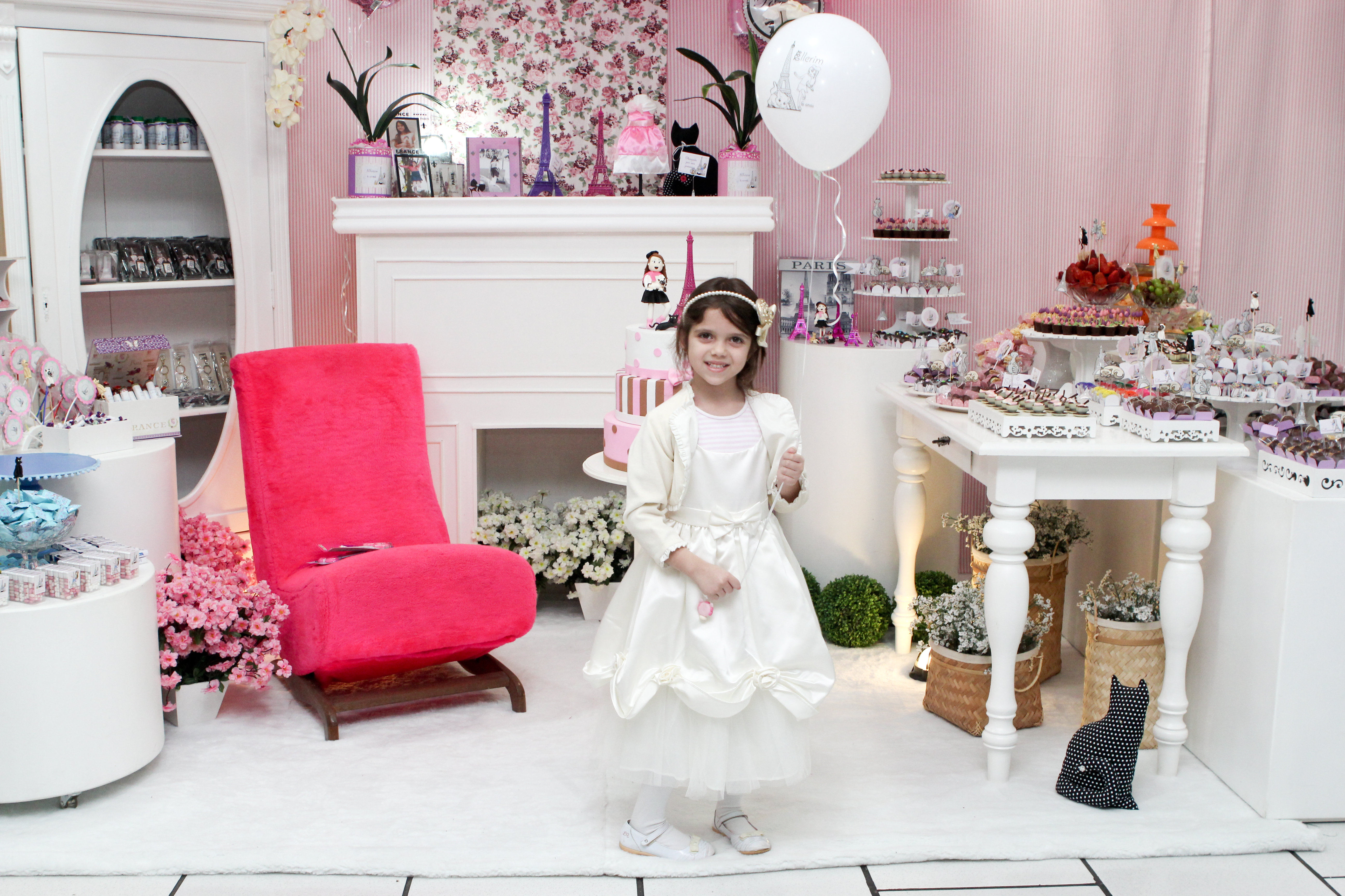 Esta parte pode ser a mais fácil… ou a mais difícil. Se você fizer a festa num buffet não terá problemas, porque eles fornecem o fundo. Mas quando fizer a festa em casa ou em salão de festa, é importante não deixar o fundo (quadros, porta, imperfeições da parede) não poluam o visual da mesa. Isso faz toda a diferença! Se você não tem uma parede toda branca em toda a extenção da mesa, use um pano de cor neutra ou na cor do tema da festa. Para enfeitar você pode fazer um painel de rosetas de papel, que fica perfeito! Também fica lindo usar alguns pompons de papel de seda e bandeirinhas.