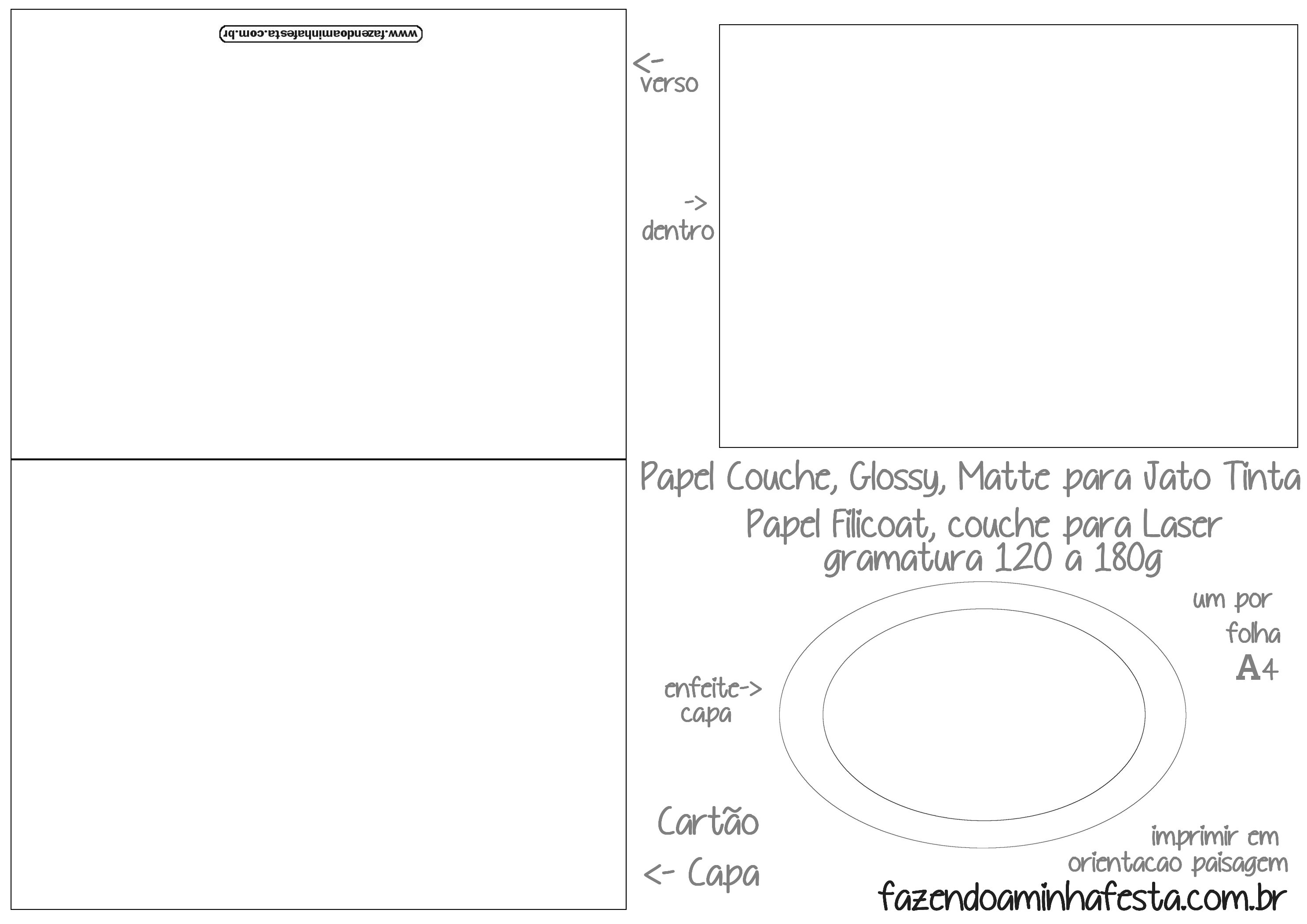 PAPEL: Imprimir em papel canson, filicoat ou couchê para laser, e para jato de tinta dê preferência para o Papel Glossy, que é o mais bonito. Mas se não encontrar pode usar canson, vinil ou couchê (sempre verificar se o papel é para jato de tinta ou laser, o que faz toda a diferença na qualidade da impressão. Outra coisa importante é configurar a impressora para o tipo de papel, gramatura e fosco ou brilhante, conforme o papel que você escolher). A gramatura do papel é de 120 a 180g.