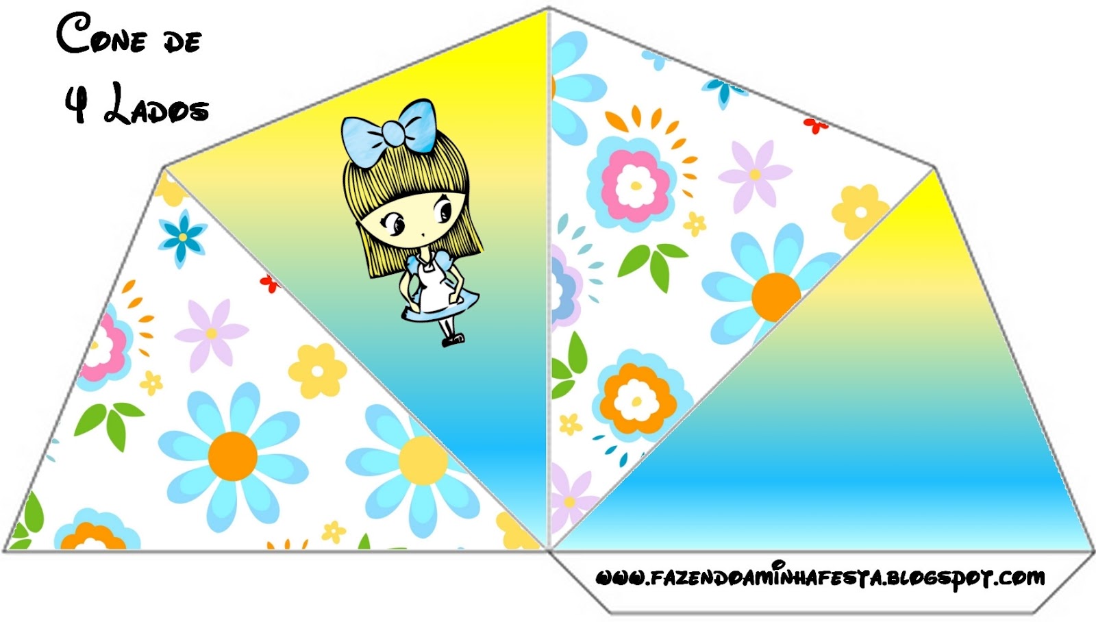 Cone Guloseimas 4 lados Alice no País das Maravilhas Menina: