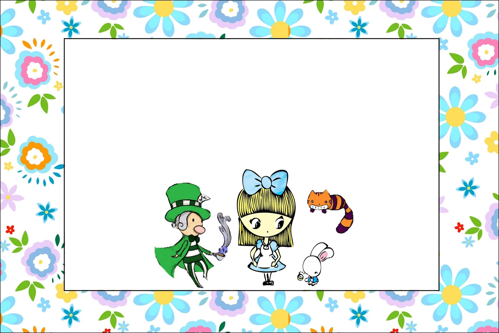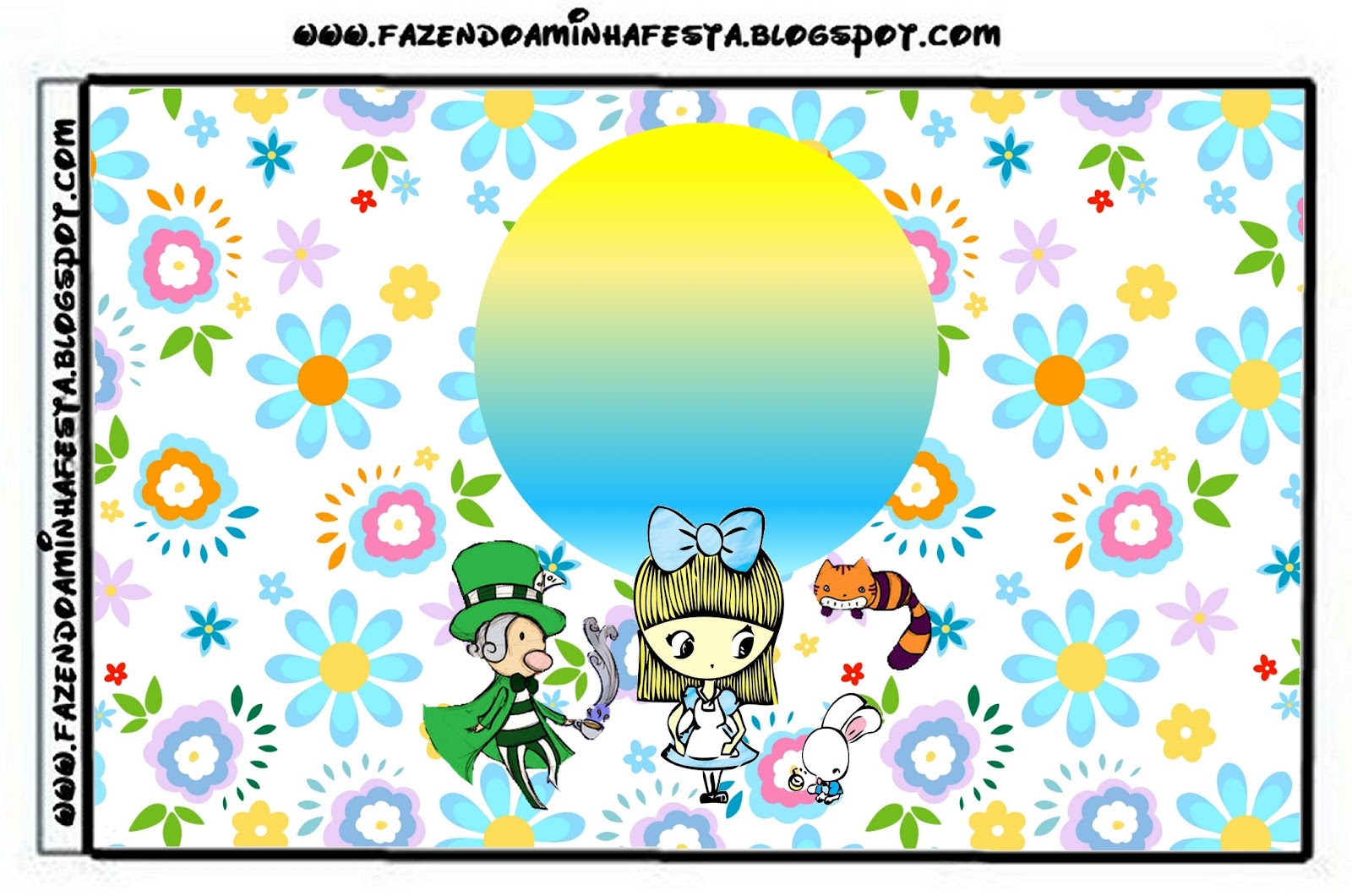 Moldura Convite e Cartão Alice no País das Maravilhas Menina: