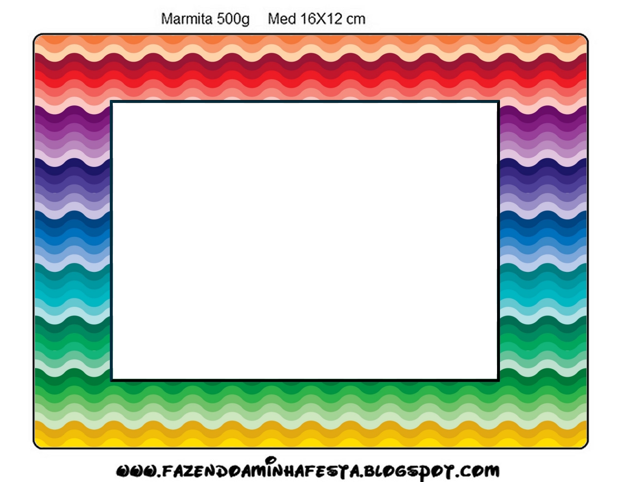 Moldura Convite e Cartão Festa Arco Íris Cores Fortes: