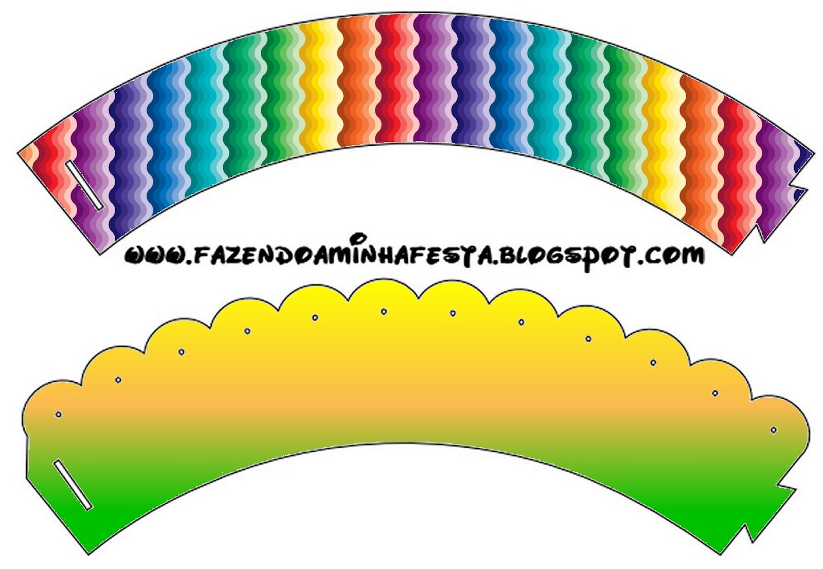 Saias Wrappers para Cupcakes Festa Arco Íris Cores Fortes: