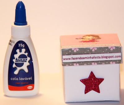 A tampa é mais fácil de montar, é só recortar e colar nas abrinhas brancas.