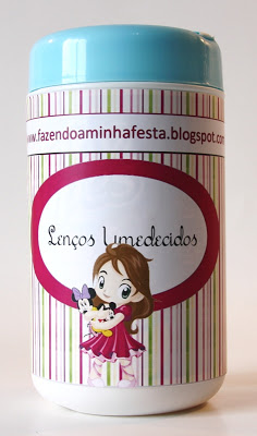 Imprimir em papel couchê adesivado, qualquer gramatura. Tamanho: 21cm de largura por 11,5cm de altura com a borda branca, em orientação paisagem. Colar ao redor do pote, e não esquecer de cortar a borda branca, pois este molde não dá a volta inteira no pote cilíndrico: Molde Limpo Lencinhos Umedecidos Pote Cilíndrico (qualquer marca): ATENÇÃO! Abra cada molde clicando com o lado ...