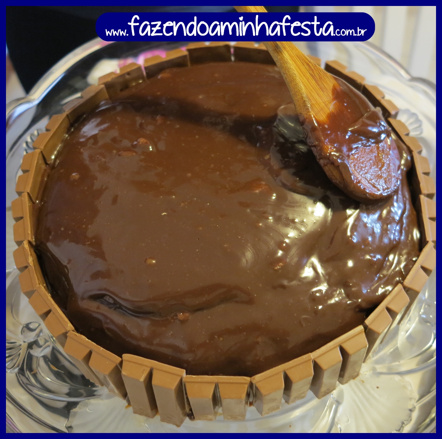 Vá colocando com cuidadeo as barras de Kit Kat ao recor do bolo,