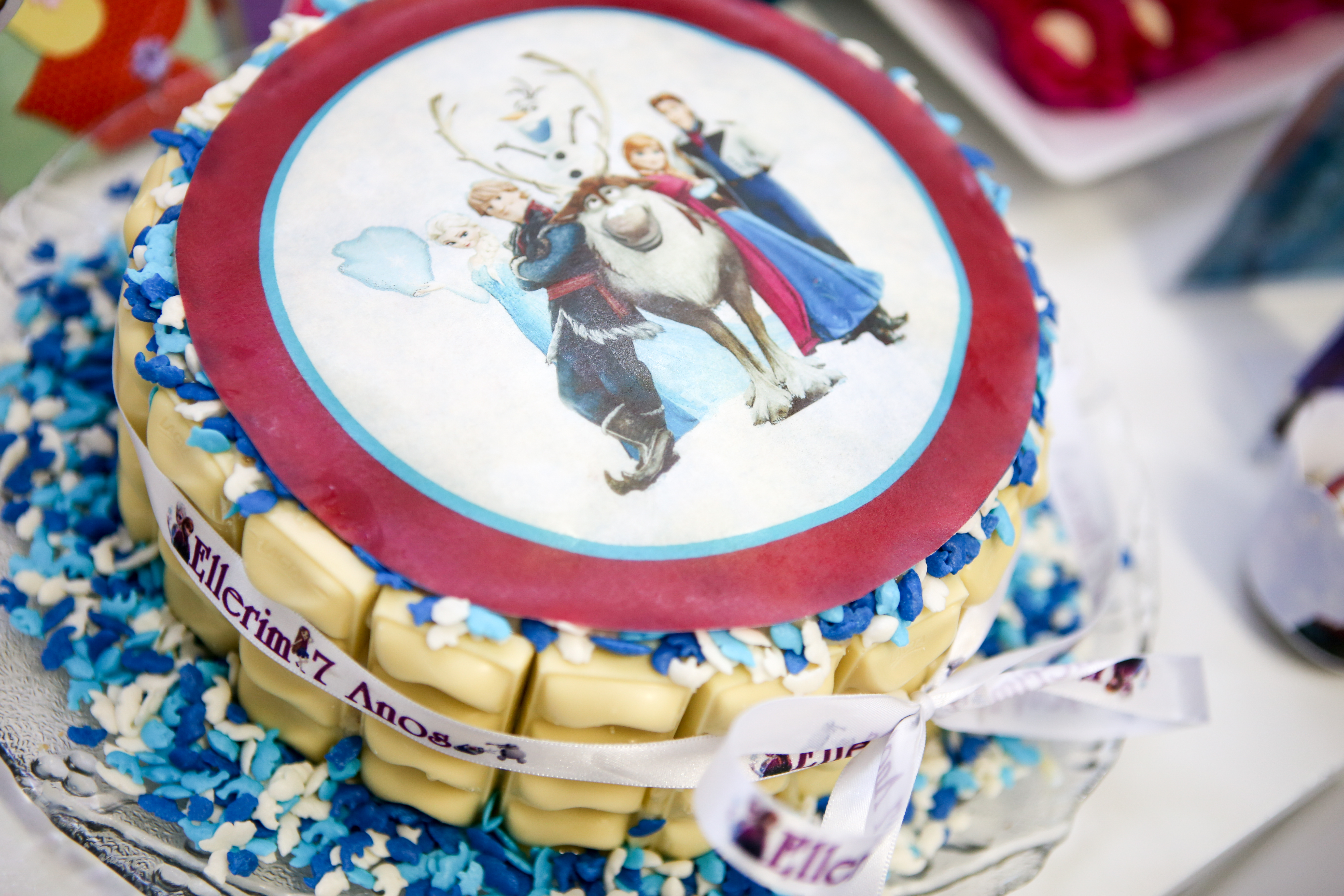 E você também pode fazer um bolo fino com bis, sai super em conta, e usar outros chocolates também, como este que fiz com Laka para o aniversário de 7 anos da Ellerim: