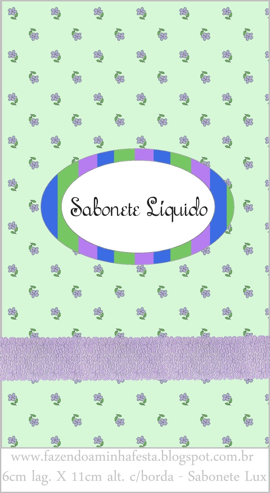 Rótulo Sabonete Líquido Floral Lilás, Verde e Azul: