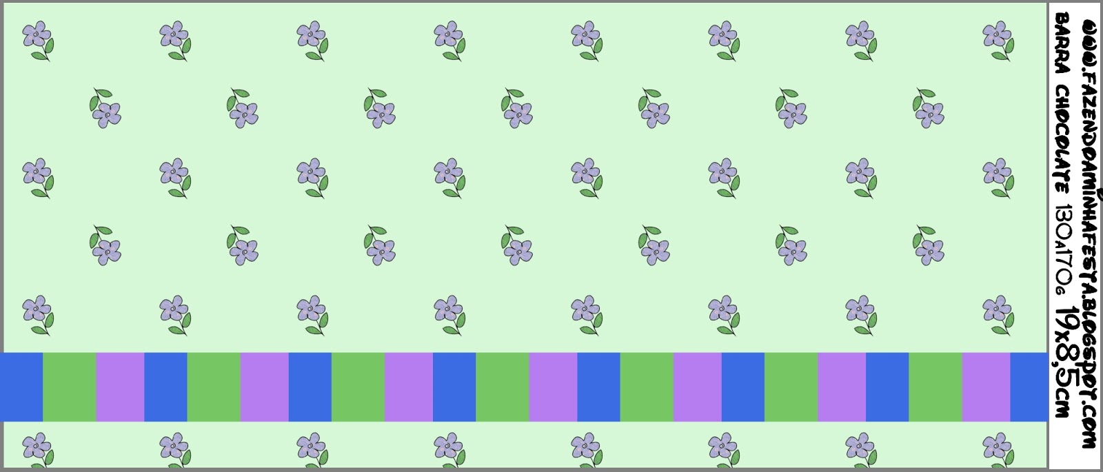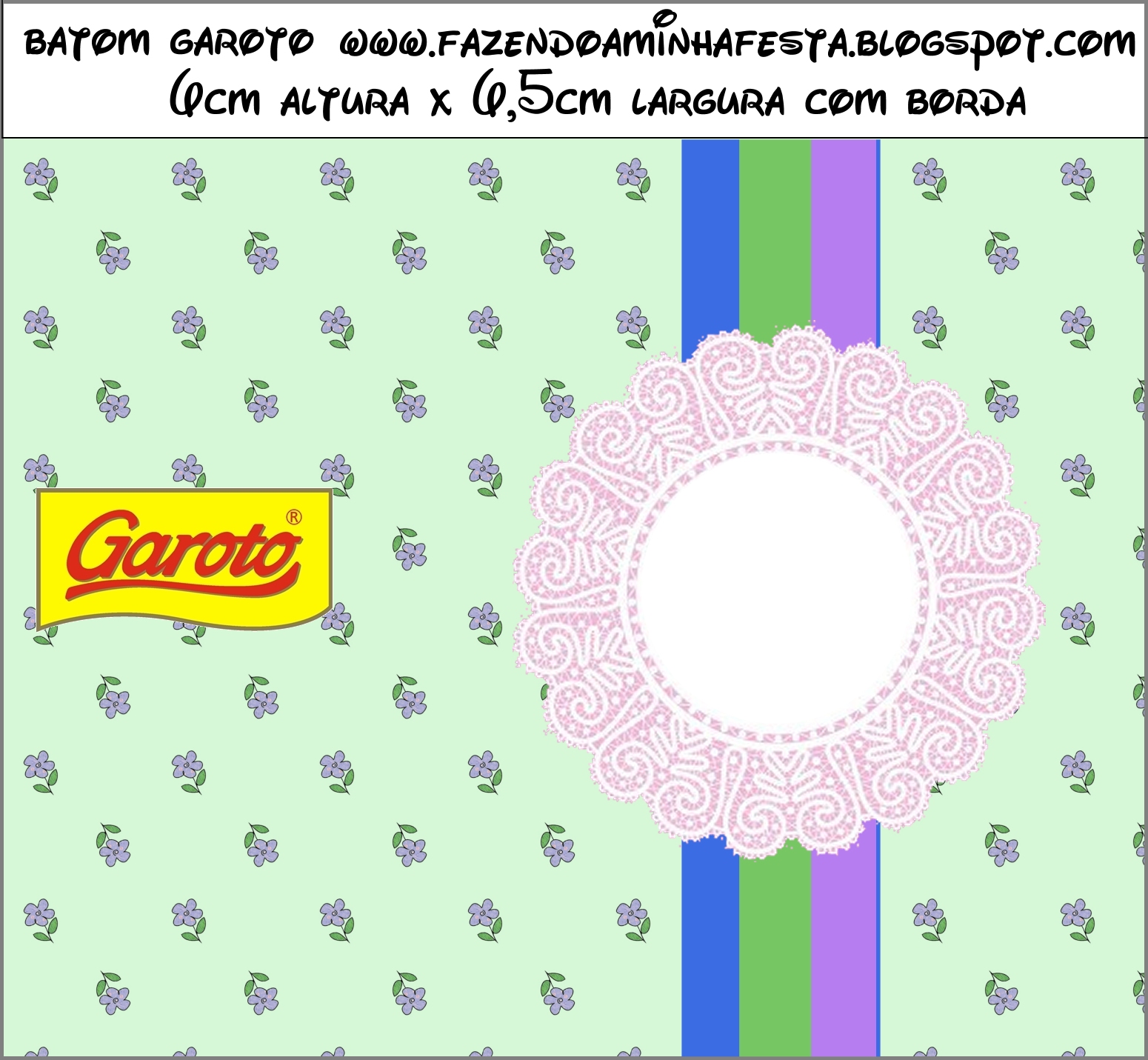 Rótulo Pastilha Garoto Floral Lilás, Verde e Azul: