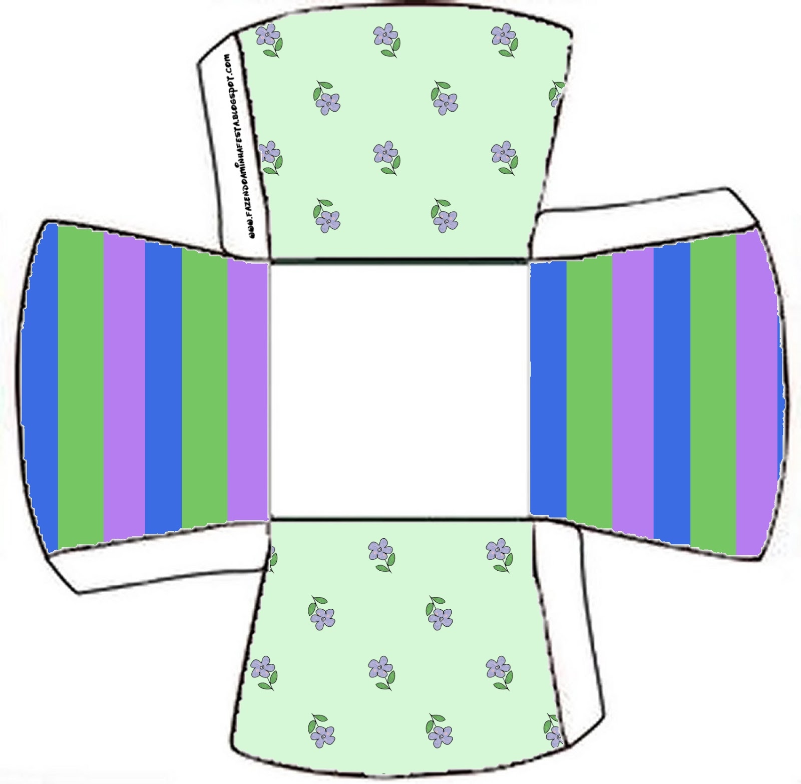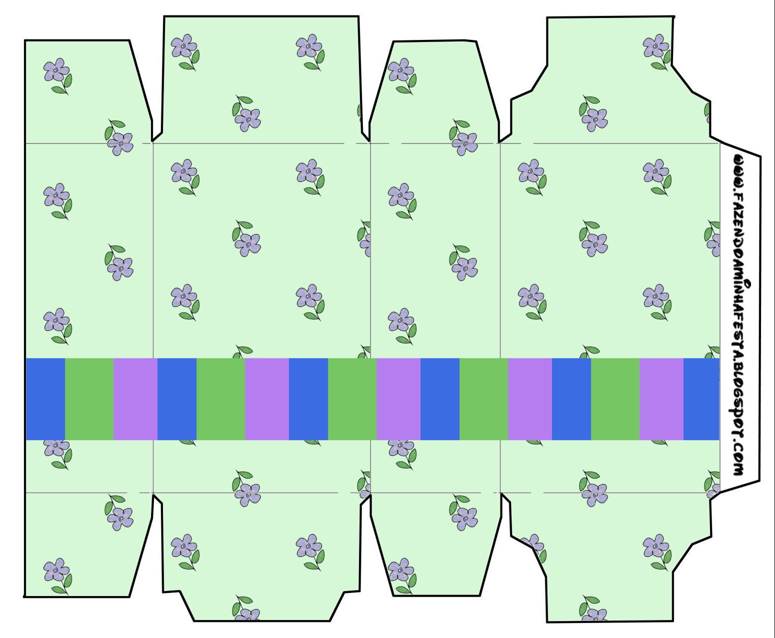 Caixa Pipoca Floral Lilás, Verde e Azul: