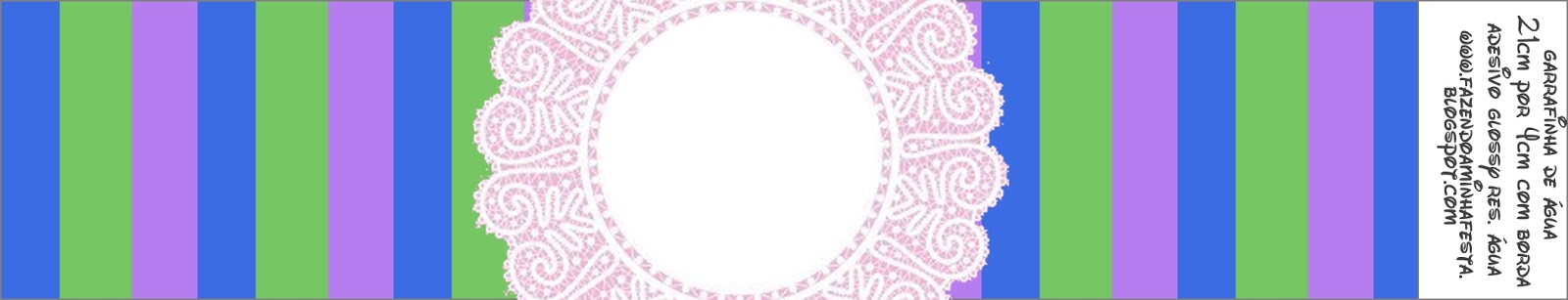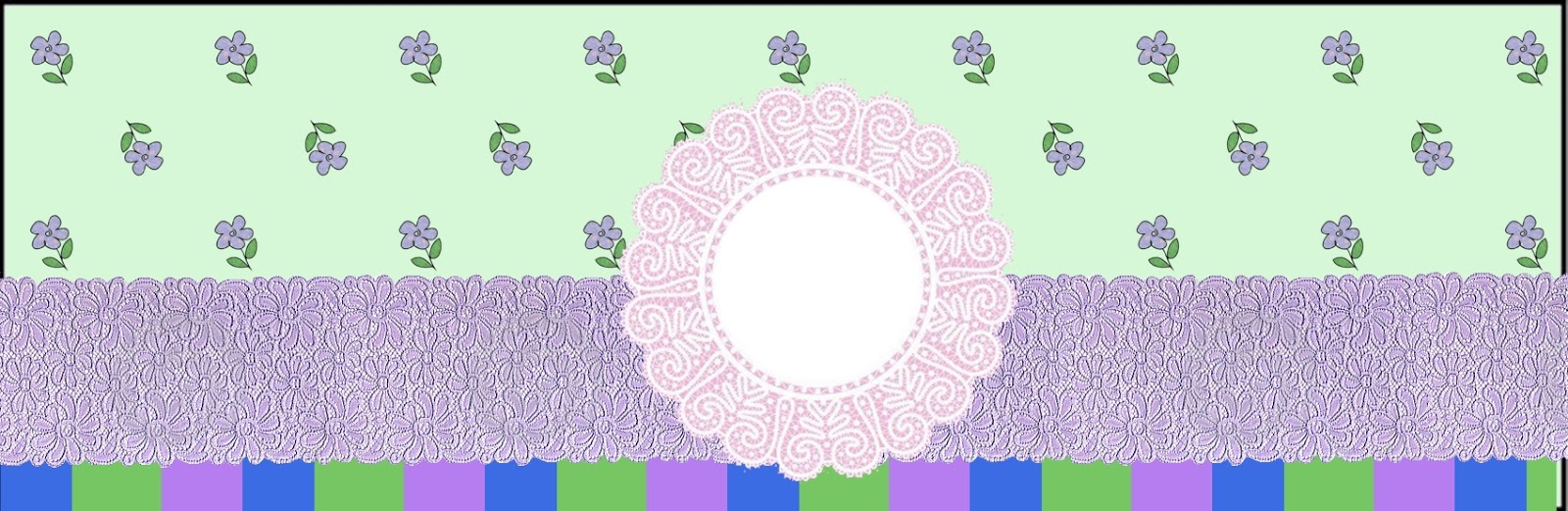 Rótulo Garrafinha de Água Floral Lilás, Verde e Azul: