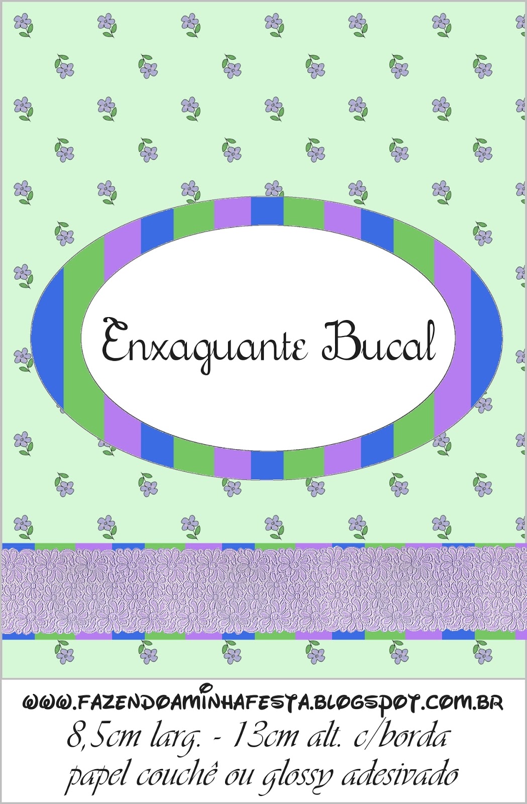 Rótulo Enxaguante Bucal Floral Lilás, Verde e Azul: