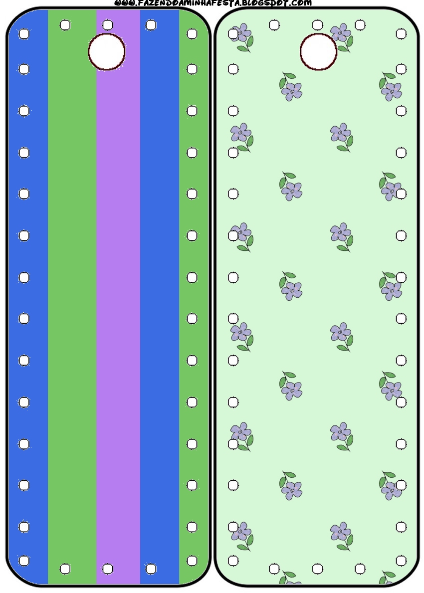 Marcador de Páginas Floral Lilás, Verde e Azul: