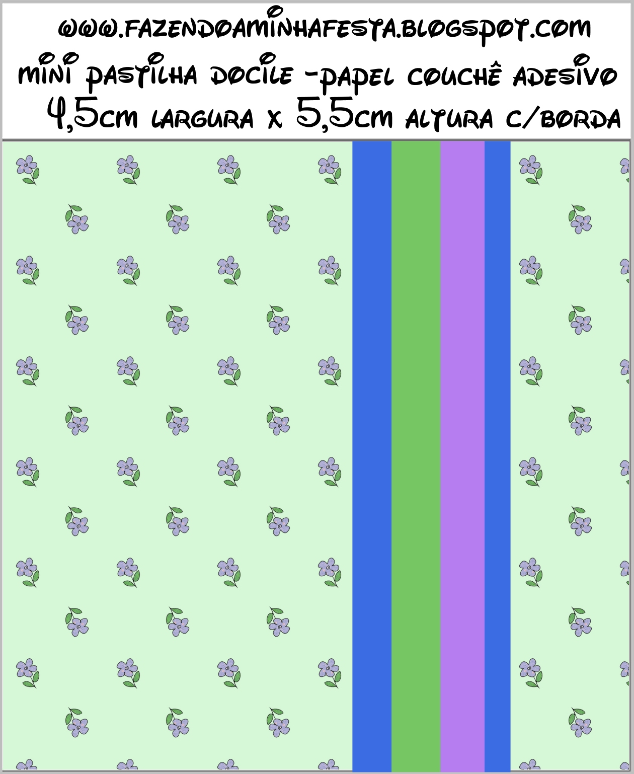 Rótulo Mini Pastilha Docile Floral Lilás, Verde e Azul: