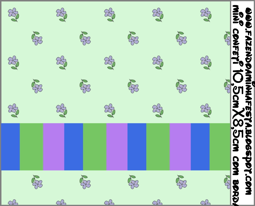 Rótulo Mini M&M Floral Lilás, Verde e Azul: