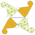 - Cone Guloseimas 4 lados Verde e Bege Floral: