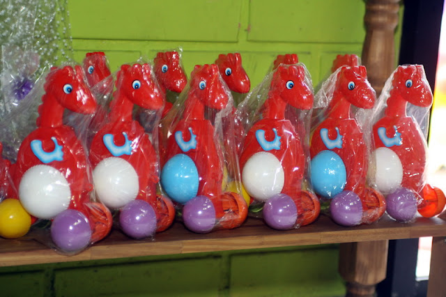 Na chegada da festa as crianças ganharam saquinhos com vários brindes para brincarem durante a festa: