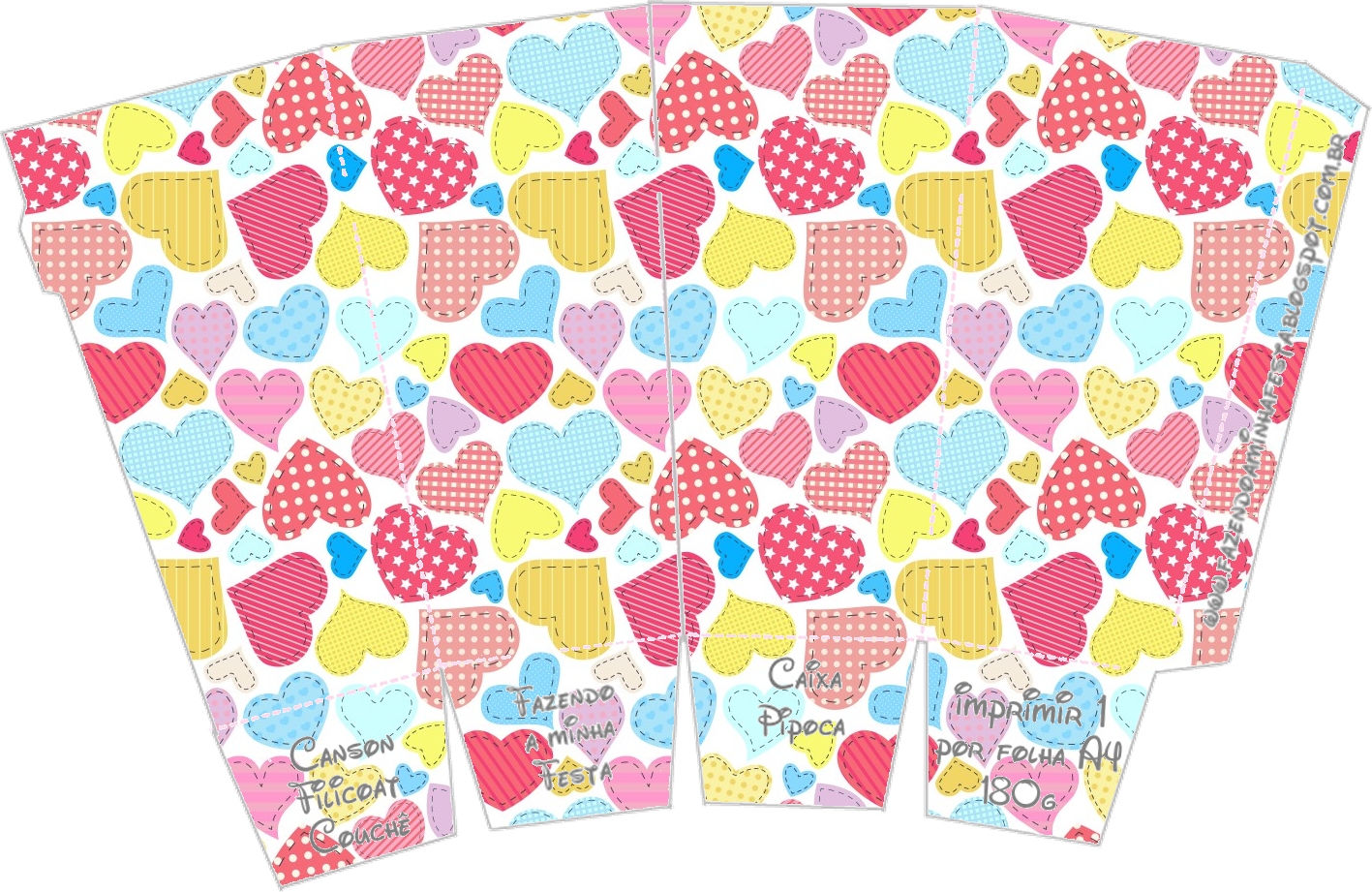 Molde Caixinha de Pipoca Corações: