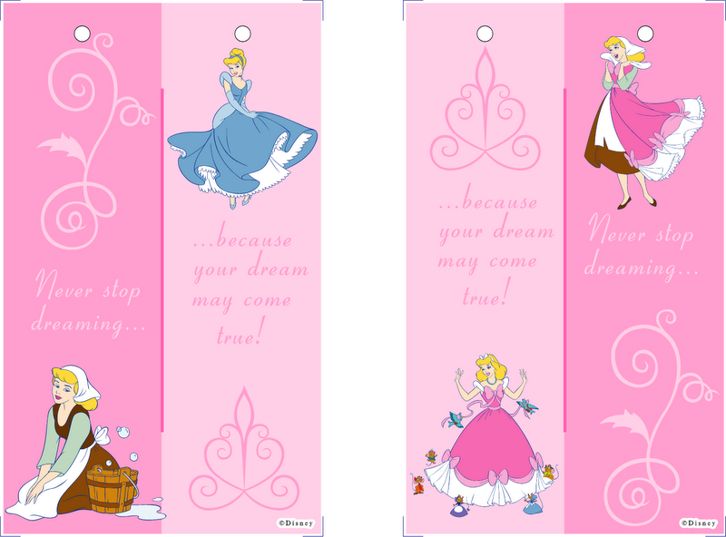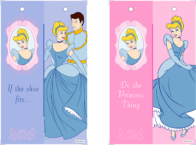 Lindos marcadores de livros da Cinderela, em jpg, para imprimir em papel gramatura 180 (para acabamento colar uma folha de contact antes de recortar, furar e passar uma fitinha!)