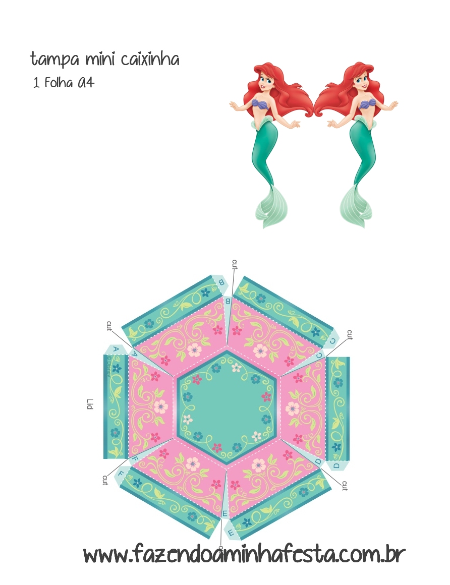 Vejam que lembrancinha perfeita para Festinha com tema Pequena Sereia Ariel! Adaptei essa caixinha, e já vem prontinha para imprimir!!!