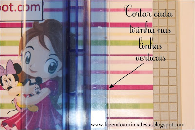 8. Cortar as 11 tiras do molde nas linhas verticais: