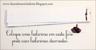 12. Para comerçar a montar a caixinha, vire as bailarinas com o lado dos alfinetes para baixo: