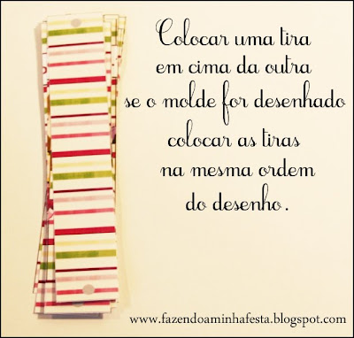 Se o molde tiver algum desenho, fazer o montinho sem tirar as tiras da ordem do desenho.