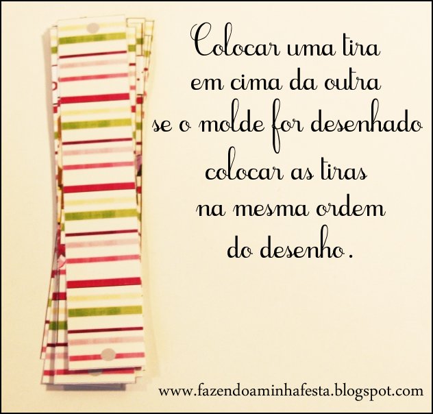 Se o molde tiver algum desenho, fazer o montinho sem tirar as tiras da ordem do desenho.