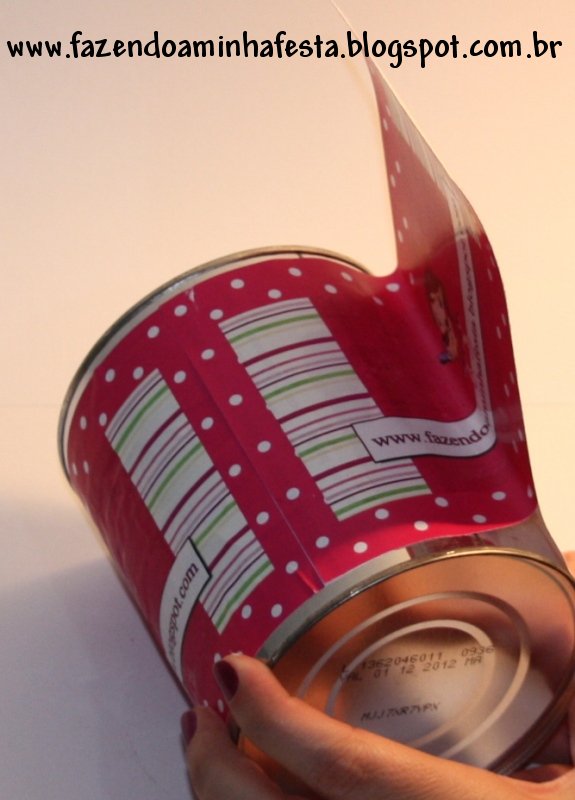 Quando usar papel adesinvado, cole um molde de cada vez ao redor da lata: