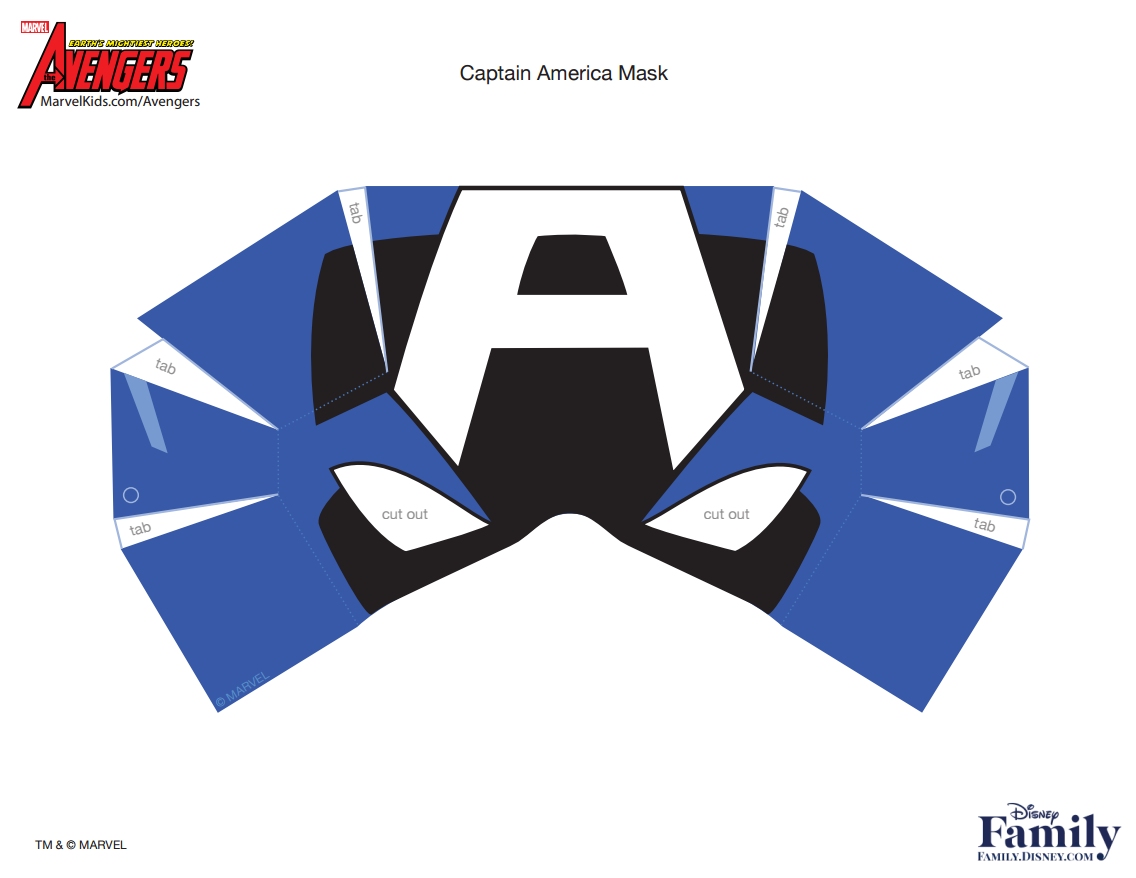 Máscara Capitão América pronta para imprimir do site da Disney!