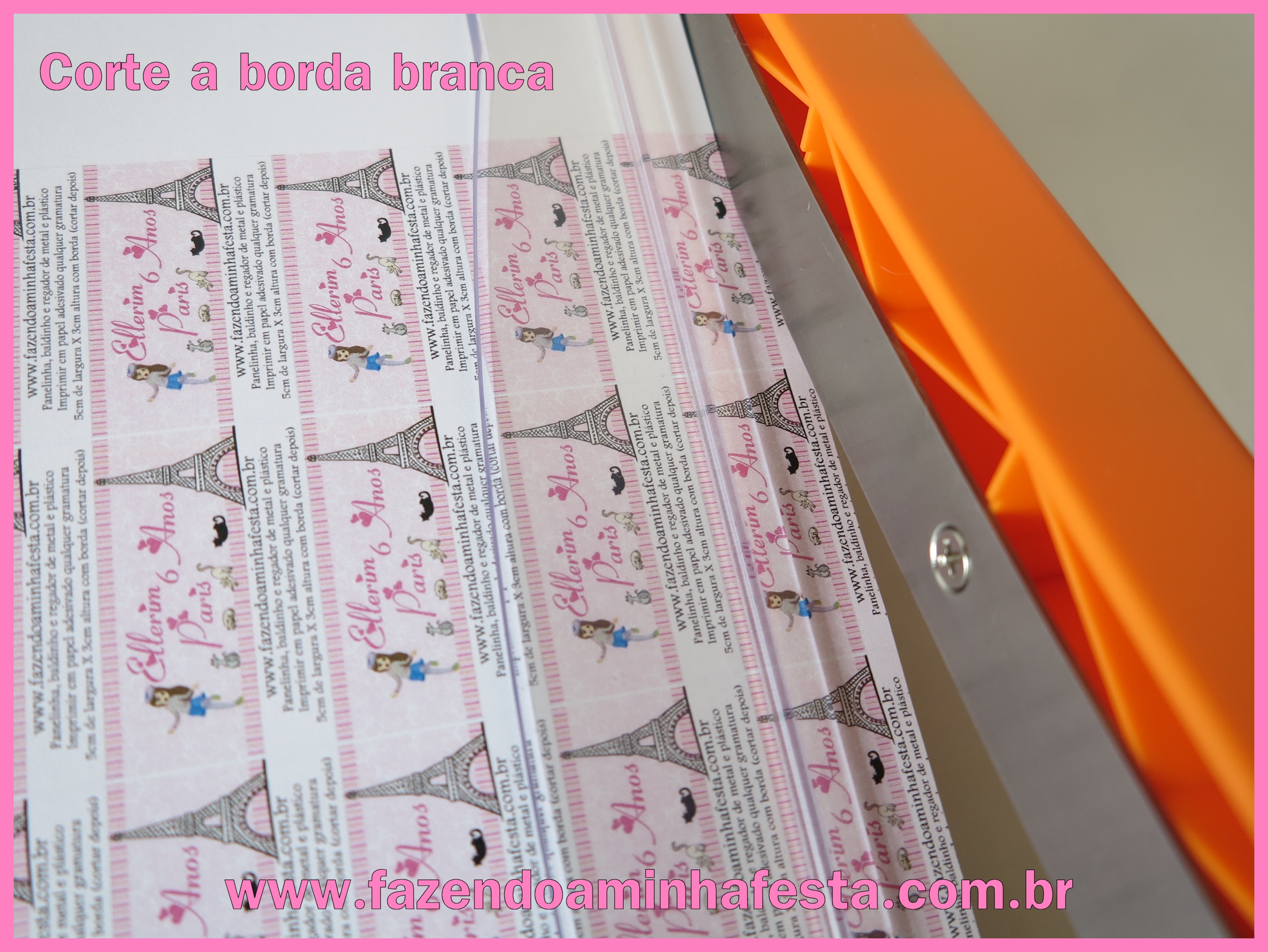 1) Imprimir os moldes decorados em papel adesivado (se for brilhante melhor) em qualquer gramatura (pode ser até de 80g). Imprimir vários por folha A4, tamanho 5cm de largura por 3cm de altura. Este é o tamanho com a borda, se cortar a borda digitalmente, imprimir com 2cm de altura, pois a borda tem 1cm.