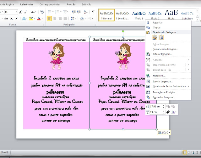 ola , como faço p escreve dentro do convite? ja colei no word mais ñ consigo escrever! o do convite acima.