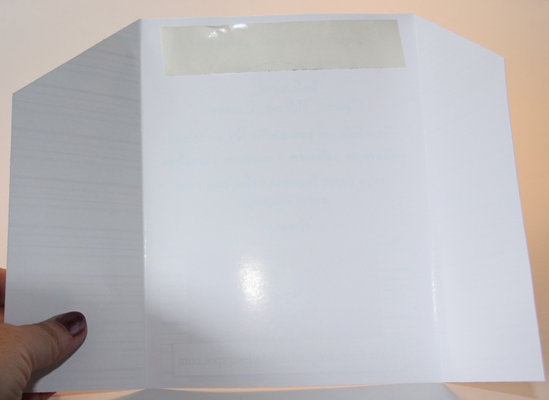 Imprimir o envelope em papel com gramatura 180 ou de preferência 230 (couchê, filicoat ou canson) em uma folha de tamanho A4, com tamanho 27cm X 18cm.