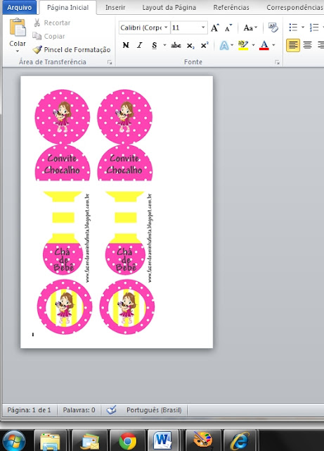2. Depois de salvar o molde decorado com a imagem desejada, insira a imagem no Word, na orientação retrato (normal) com bordas finas, e coloque duas imagens na página