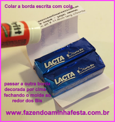 6) Envolva o rótulo ao redor do bis, e cole a borda decorada por cima da borda escrita