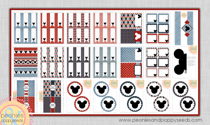 Para quem não gosta de editar e personalizar as imagens, estes moldes prontos do Mickey do blog Peonies And Poppy Seeds são perfeitos, e fazem uma linda e chique festinha do tema!!!! Já vem tudo no tamanho certo, é só abrir o arquivo (abaixo) e imprimir em papel gramatura 120 a 180. Escolha o papel ideal para a sua impressora, ...