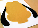 Cole as orelhas com cola de tecido, como aparece na figura.