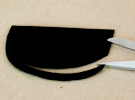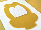Em feltro preto, cortar uma peça do nariz (nose), e duas peças dos olhos (eyes pupil).